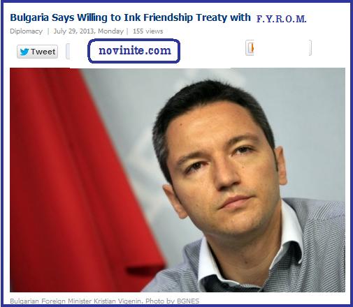 Bulgaria Says Willing to Ink Friendship Treaty with F.Y.R.O.M. ... Bulgaria and FYROM share a common past and a similar language.